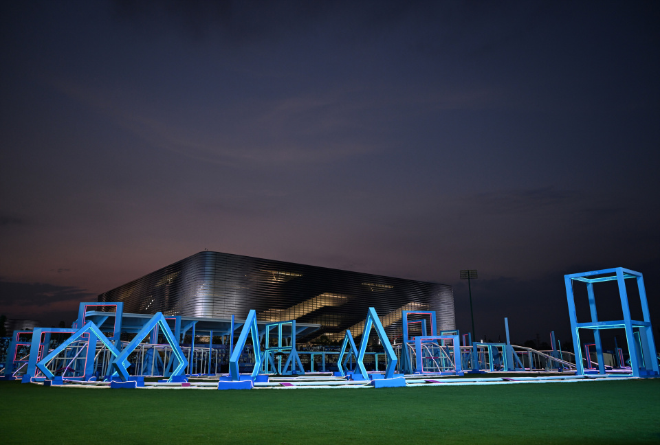 这是8月16日拍摄的2025年成都世运会无人机竞速比赛场地成都东安湖体育公园室外田径场。新华社记者 张博文 摄